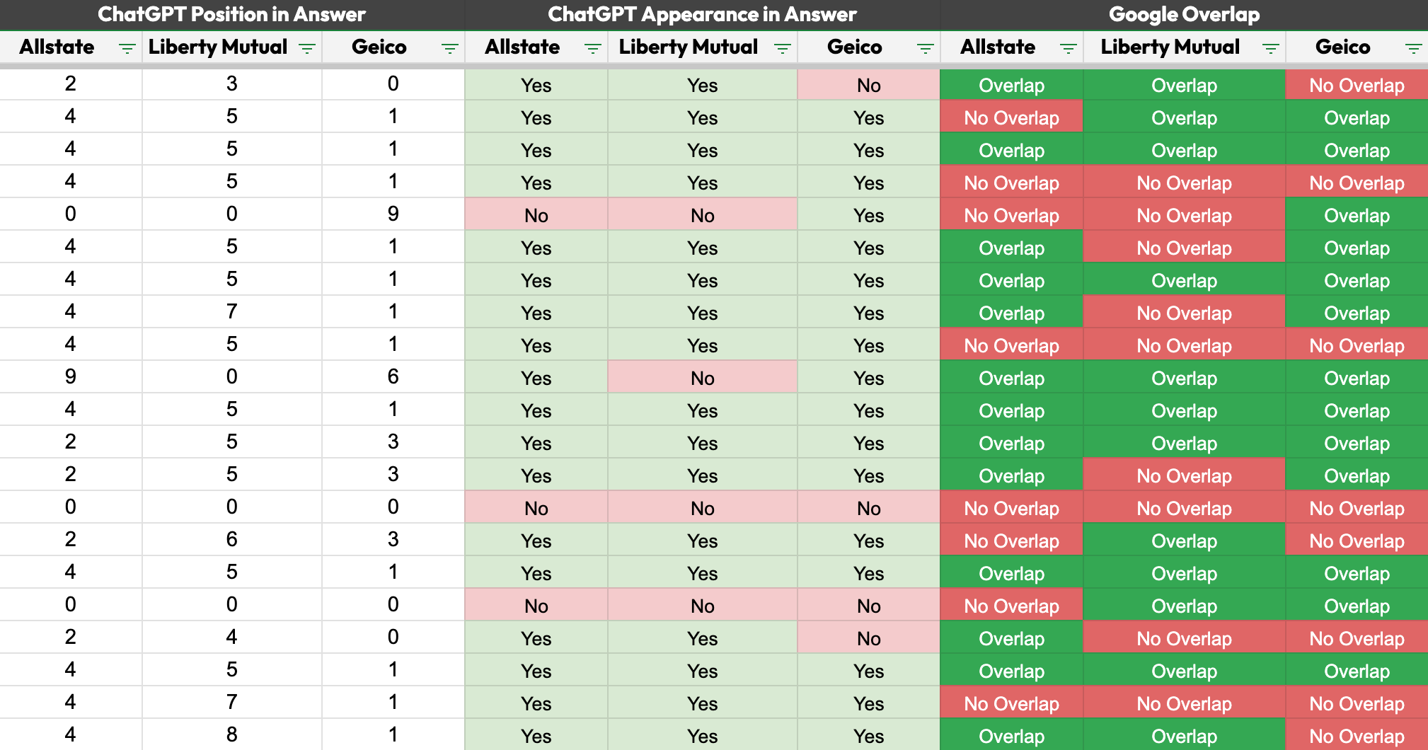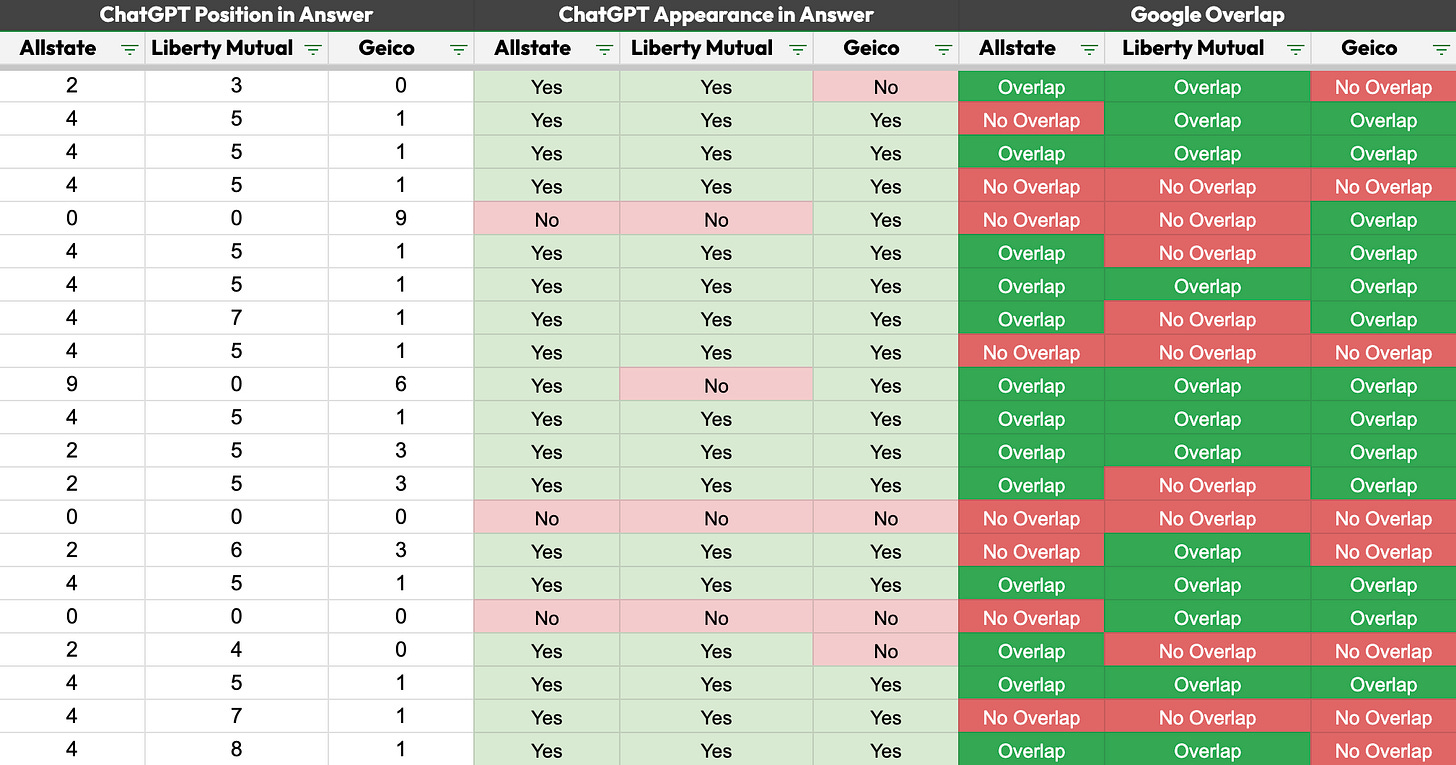 There’s only a 62% overlap between what ranks #1 on Google and what ChatGPT recommends.