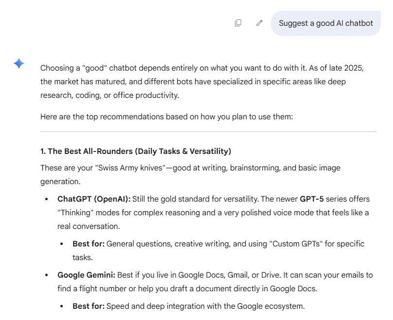 Ask ChatGPT or Claude to recommend products in your category. What does it say? What does it cite? What criteria does it use?